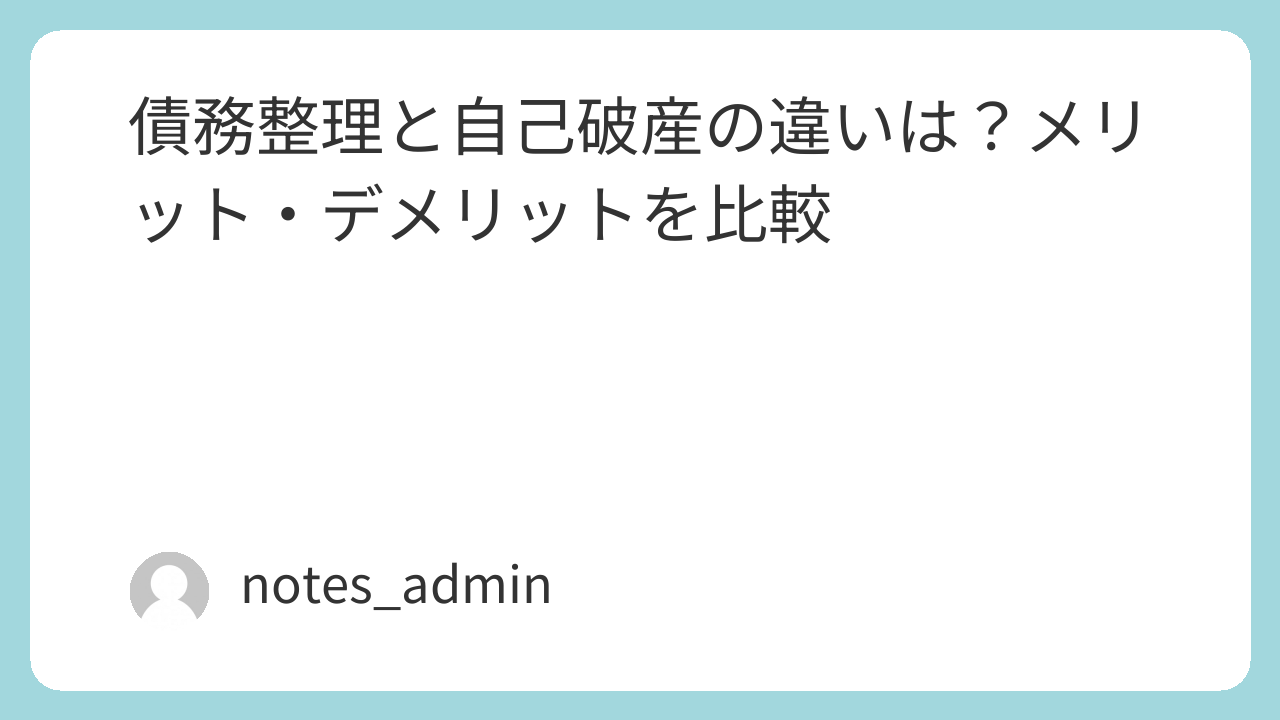 | 項目 | 任意整理 | 個人再生 | 自己破産 |