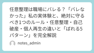 ④-1 相談の流れ ☆任意整理は職場にバレる?「バレなかった」私の実体験と、絶対に守るべき1つのルール・任意整理・自己破産・個人再生の違いと「ばれる5パターン」を完全解説 債務整理は原則会社にばれません。ばれるのは「給与差押え」「会社が債権者」「社内保証」「官報の誤解」「書類提出」など限定パターンのみ。任意整理・個人再生・自己破産別に、ばれない順番・回避策・実体験まで当事者目線で網羅します。 2026.02.12 ④-1 相談の流れ④相談・手続き