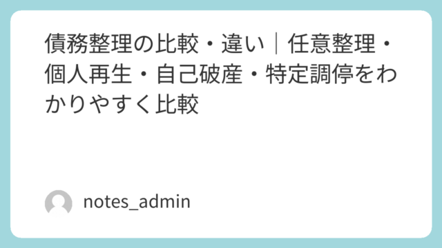 ③-2 比較・違い 債務整理の比較・違い|任意整理・個人再生・自己破産・特定調停をわかりやすく比較 債務整理の4つの方法(任意整理・個人再生・自己破産・特定調停)の違いを比較。向いている人や判断ポイントを整理して解説します。 2026.02.09 ③-2 比較・違い③判断・比較