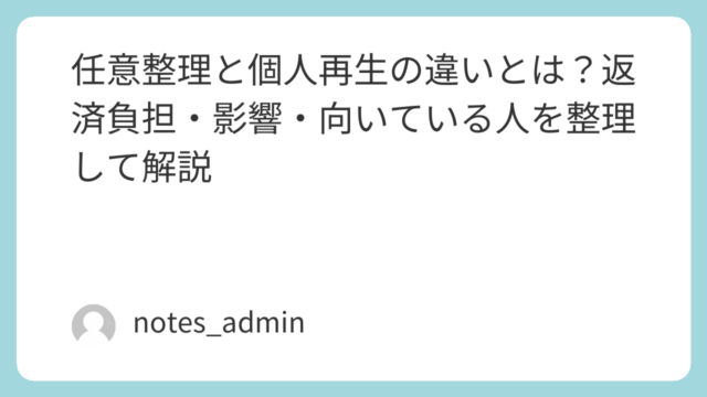 ③-2 比較・違い 任意整理と個人再生の違いとは?返済負担・影響・向いている人を整理して解説 任意整理と個人再生の違いを分かりやすく比較。返済負担や影響、向いている人の特徴を整理し、判断に迷う人向けに解説します。 2026.02.10 ③-2 比較・違い③判断・比較