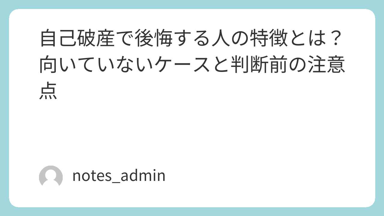 自己破産で後悔しやすい人の特徴と、向いていないケースの判断ポイントを整理。生活や仕事への影響も含めて選択肢を比較し、落ち着いて判断するための考え方を解説します。