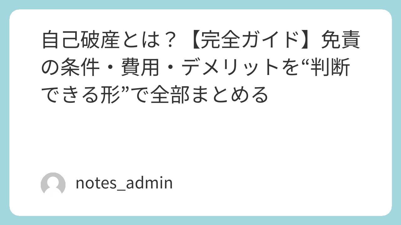 自己破産とは?【完全ガイド】|免責の条件・費用・デメリットを“判断できる形”で全部まとめる